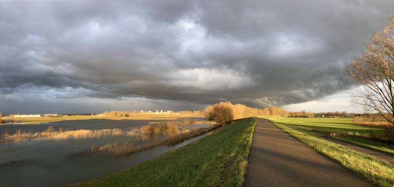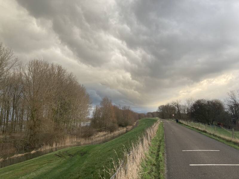 Een heerlijke wandeling met mooie wolkenluchten en een zonnetje dat zich af en toe even liet zien leek me ten deel te vallen. Tot ik weer binnen de bebouwde kom van Druten kwam. De toch al koude gure wind deed er een schepje bovenop, het begon zachtjes te hagelen en om even later te ontaarden in een typisch Hollandse winterse bui.
