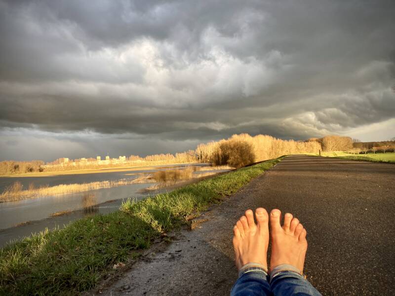 Mijn voeten hielden zich goed maar werden spierwit en door en door koud. Toen ik eenmaal na 13 kilometer weer thuis was moesten ze eerst even uit de ontdooi stand, zo'n fase waarin de bloedsomloop langzaamaan weer op gang komt en gepaard gaat met wat onaangenaam getintel.